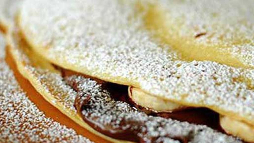 - Levitä ohukaisille suklaalevitettä ja banaaniviipaleita.