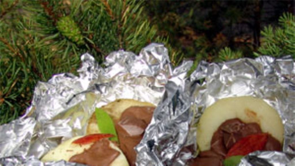 Kuori omenat ja poista siemenkota. Leikkaa hedelmät noin sentin paksuisiksi siivuiksi niin, että siemenkodan reikä jää keskelle. Sulata voita parilatasolla ja paista omenaviipaleet. Levitä paistetut viipaleet foliopalalle ja murra suklaata niiden päälle. Nosta folion reunat ylös ja siirrä grillille kunnes suklaa sulaa.