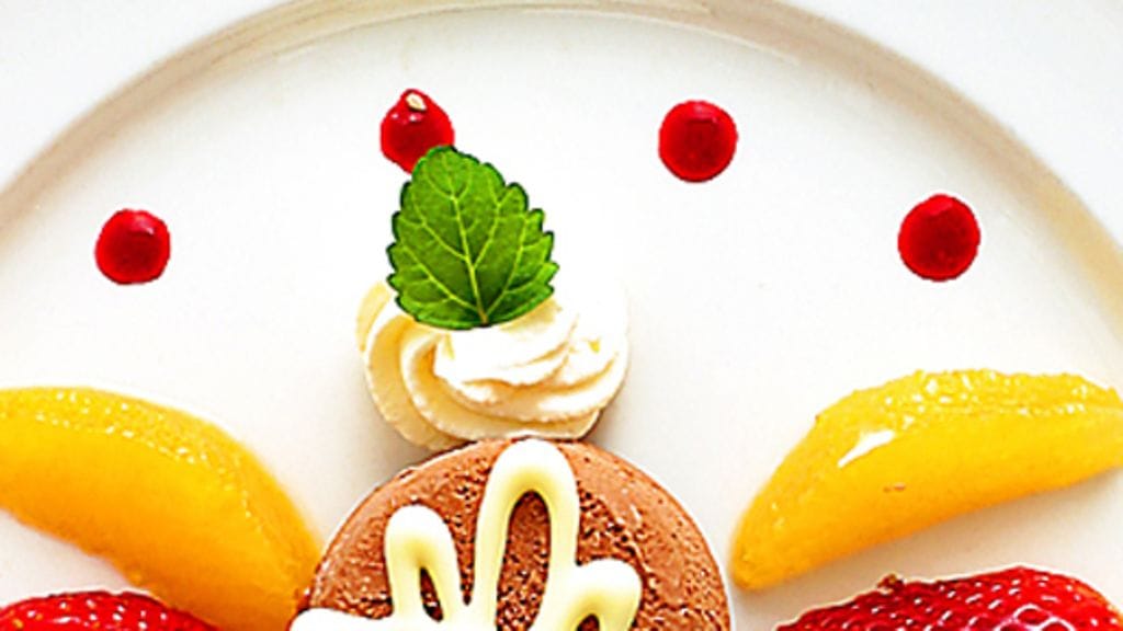 4. Tarjoile hyydyke pehmeiksi keitettyjen omenalohkojen sekä mansikanpalasten kanssa. Pursota mielellään mukaan kermavaahtonokareita ja koristele sitruunamelissalla sekä paseeratuilla vadelmilla tai mansikoilla.