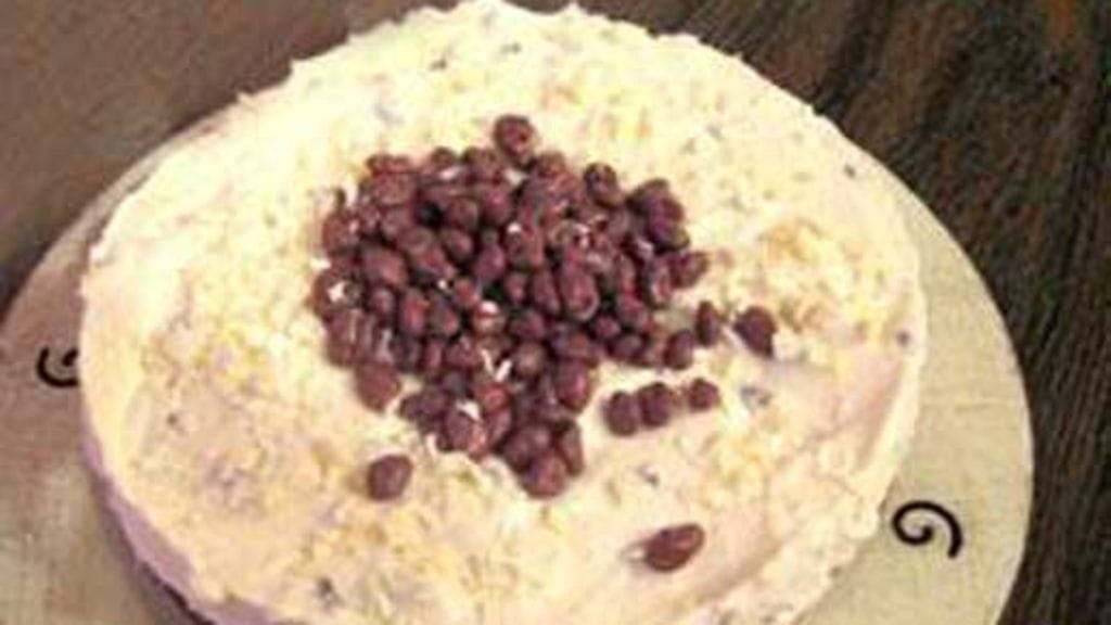 Kaada seos kostutetulle piparipohjalle, joka on irtopohjavuossaan. Jäädytä pakastimessa yön yli. Ota juuri ennen tarjoilua pakastimesta pöydälle, irrota vuoka ja koristele valkosuklaalastuin ja suklaarusinoin.