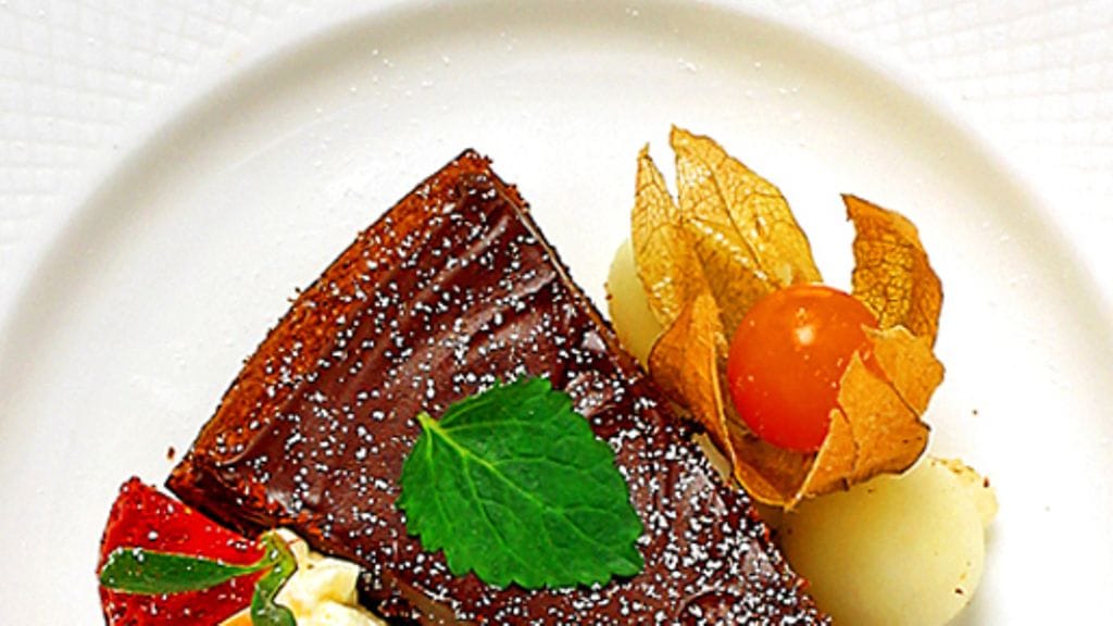 1. Kuumenna uuni 225 asteeseen ja voitele irtopohjavuoka. Sulata kilosuklaa ja voi paksupohjaisessa kattilassa miedolla lämmöllä. Vatkaa munat ja sokeri ilmavaksi, yhdistä jauhot ja leivinjauhe tarkoin. Sekoita jäähtynyt suklaaseos varoen munavaahdon kanssa, ja kääntele lopuksi jauhot mukaan taikinaan varoen tasaiseksi taikinaksi.