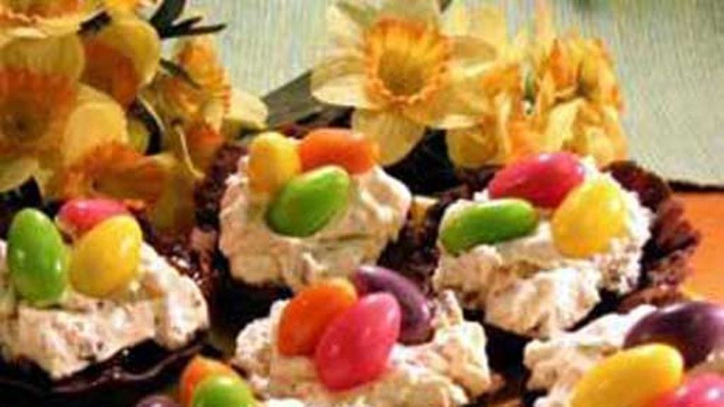 Sulata cookies suklaamurotaikinaa hieman levyt irralleen otettuina paketista (yhdessä paketissa on aina kaksi taikinalevyä). Jaa kumpikin taikinalevy kahdeksaan osaan ja painele taikinapalat silikoni- tai folio-leivosvuokien pohjille ja reunoille. Taikinasta tulee yhteensä 16 kpl leivospohjia.