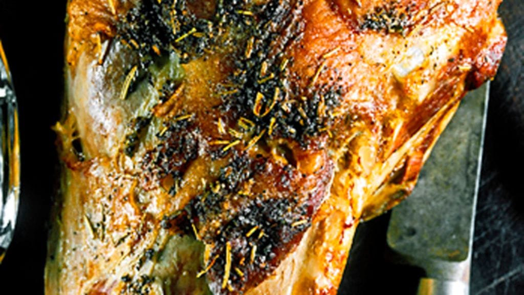 1. Kuumenna uuni 175 asteeseen. Hiero paisti hienonnetuilla sardelleilla, mausta pippurilla.