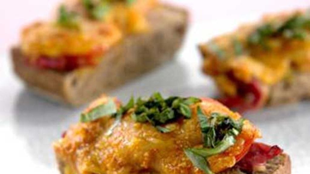 Ripottele pinnalle parmesaanilastuja. Paahda uunissa 225 asteisen toiseksi ylimmällä tasolla noin 5 min. Tarjoile alkupalana tai keiton kanssa.