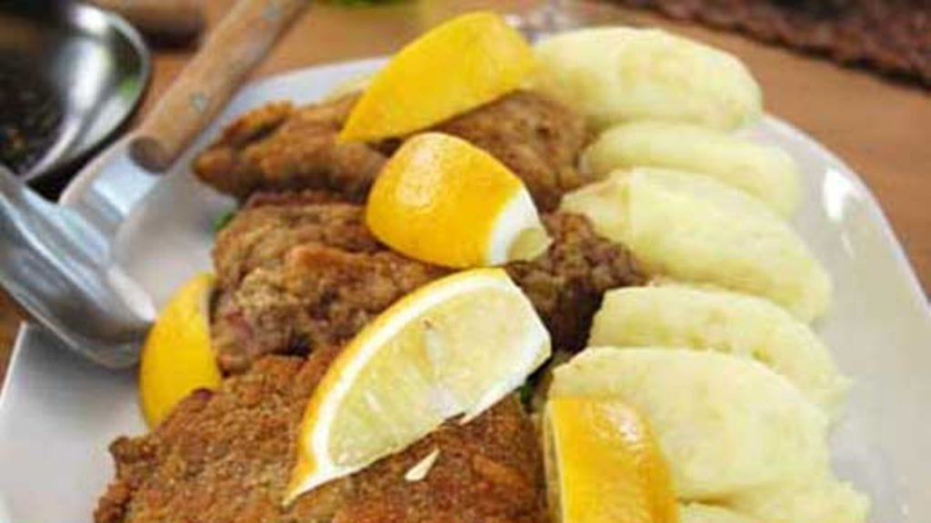 Nuiji vasikka isoiksi ohuiksi leikkeiksi. Mausta kevyesti suolalla ja valkopippurilla. Aseta päälle muutama siivu savukinkkua ja emmentaljuustoa. Taita leike taskuksi. Riko munat ja riko niistä rakenne haarukalla. Sekoita joukkoon 2 rkl kylmää vettä. Pyöräytä leikkeet ensin vehnäjauhoissa, sitten munissa ja viimeiseksi korppujauhoissa. Paista leikkeet pannulla öljy/voi seoksessa kauniin kullanruskeiksi, noin 3 min per puoli. Koristele sitruunanlohkolla.