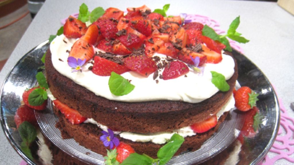 Leikkaa kakku keskeltä halki. Kostuta kakkulevy. Laita kakkulevyn päälle puolet vaahdotetusta kuohukermaa ja mansikoista.