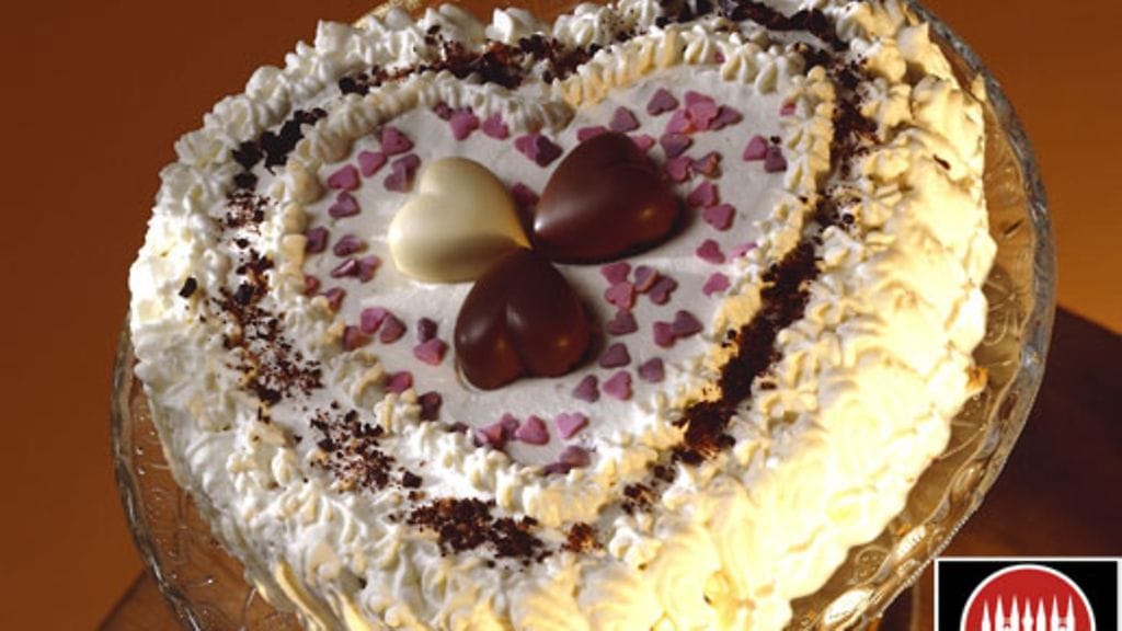 Nosta keskimmäinen osa pohjan päälle ja kostuta. Levitä kostutetulle pinnalle täytteet. Nosta viimeinen kerros ja kostuta se. Koristele kakku lopulla vaahdolla, suklaaruusuilla ja suklaarouheella.