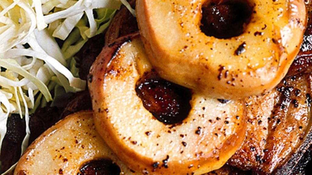Omena ja porsaanliha on vanha, rakas makuyhdistelmä. Jos haluat muunnella keräkaalia, voit sekoittaa siihen kastikkeen appelsiinimehusta, oliiviöljystä, suolasta ja pippurista.
