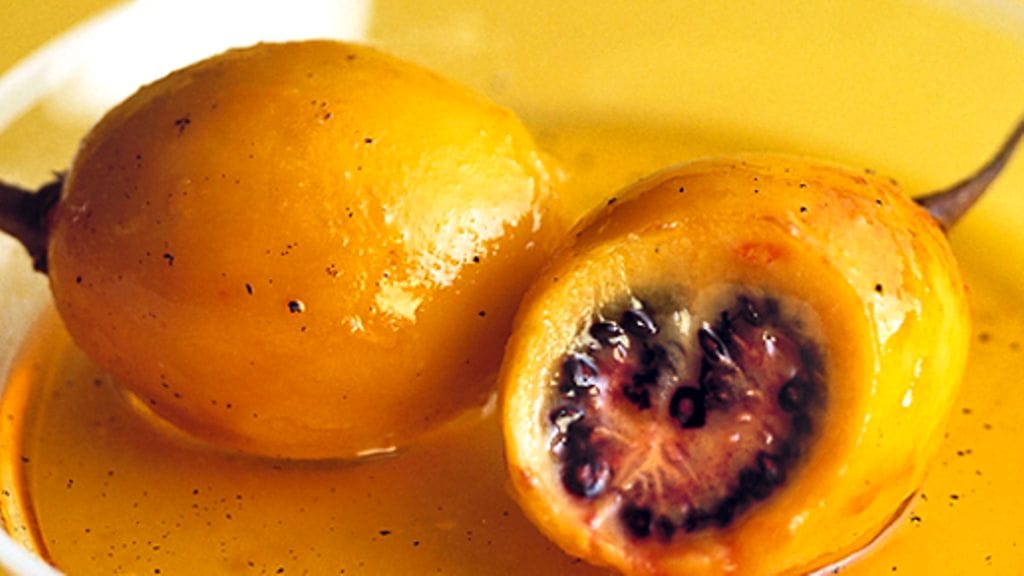 1. Huuhtele tamarillot tarkoin. Kuumenna vesi ja vaniljatanko. Poimi vaniljatanko kattilasta, halkaise se pituussuuntaan. Raaputa siemenet veteen ja laita tanko takaisin kattilaan.
