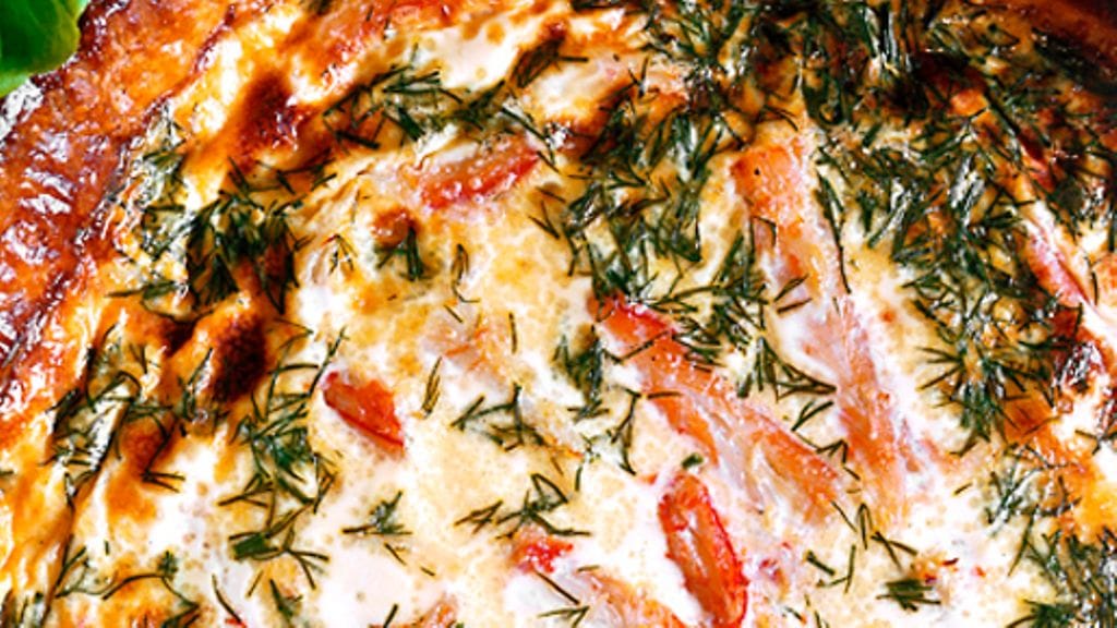 3. Vatkaa munat, kerma ja tilli, mausta. Laita piiraskuoreen puhdistetut taskuravunlihat, kaada päälle munakerma ja paista kypsäksi 10-15 minuuttia.