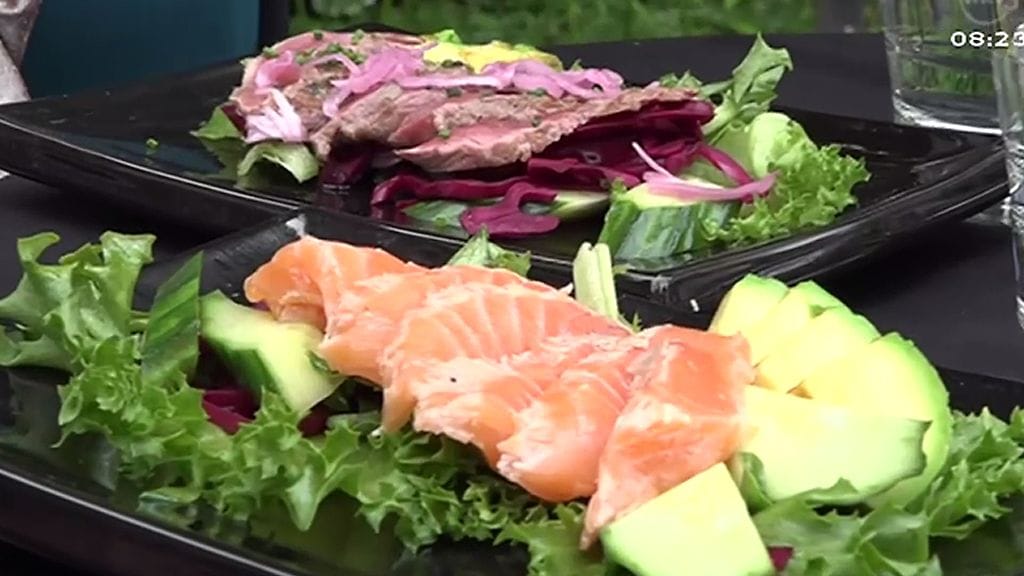 Puolita avokado pitkittäin ja poista kivi. Grillaa sisäpuoli edellä noin 2min Anna jäähtyä. Ota kuori pois ja leikkaa salaatin joukkoon