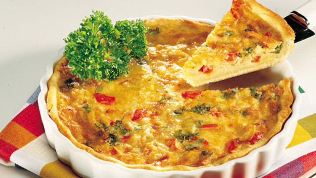 Kasvispiirakka: Vaihda palvikinkun tilalle purjosipulia, aurinkokuivattua tomaattia ja paprikaa.