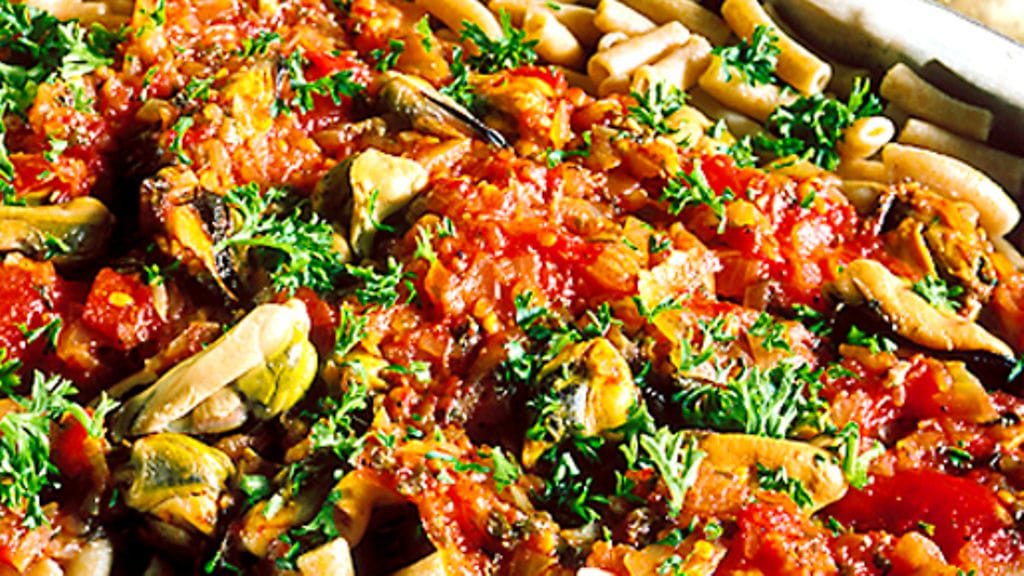 1. Kuullota sipulisilppua öljyssä, lisää sitten muut ainekset, paitsi simpukat. Keitä kastiketta, kunnas se sakenee. Mausta ja sekoita joukkoon valutetut simpukat.
