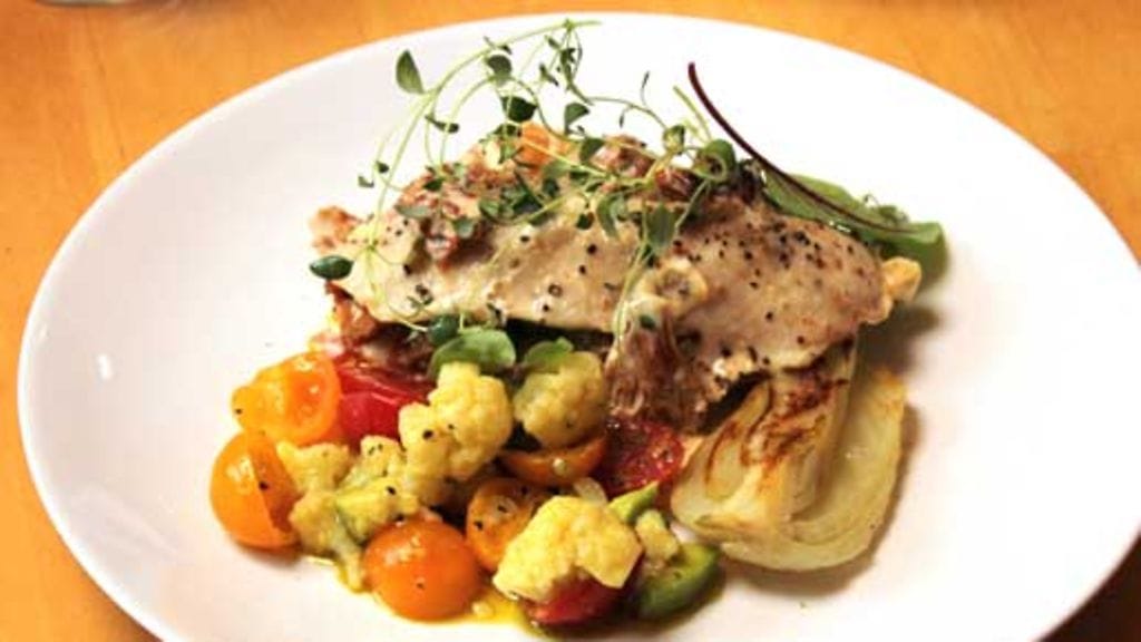 3. Leikkaa broilerin fileisiin ”taskut” ja mausta ne suolalla ja pippurilla. Täytä taskut valmistamallasi massalla. Sulje viiltokohta hammastikuilla tai ruoanlaittoon soveltuvalla narulla (liota puutikkuja vedessä hetki ).