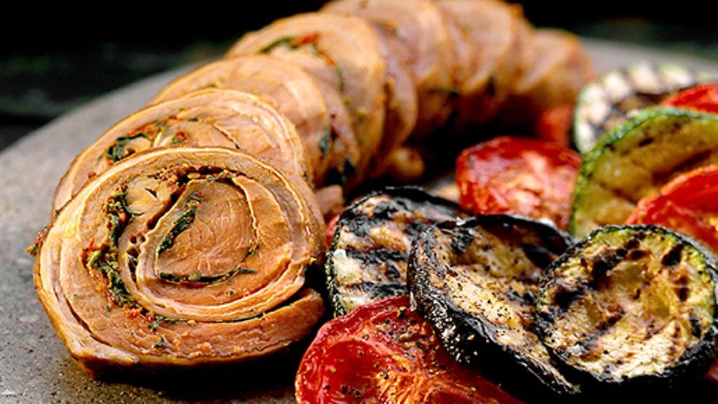1. Kuumenna uuni 175 asteeseen. Pilko tomaatit pieneksi. Puhdista pinaatit ja leikkaa paksut lehtiruodit pois. Irrota basilikanlehdet varsista. Levitä lihalevy työlaudalle ja leikkaa pois ylimääräinen rasva. Mausta liha suolalla ja jauhetulla valkopippurilla. Nosta lihan päälle tomaattisilppu, pinaatin- ja basilikanlehdet. Kääri liha rullalle ja kiinnitä paistinnarulla tukevaksi paketiksi. Pane lammasrulla uunivuokaan ja pidä uunissa noin 1 ½ tuntia. Ota uunista ja pidä lämpimänä.
