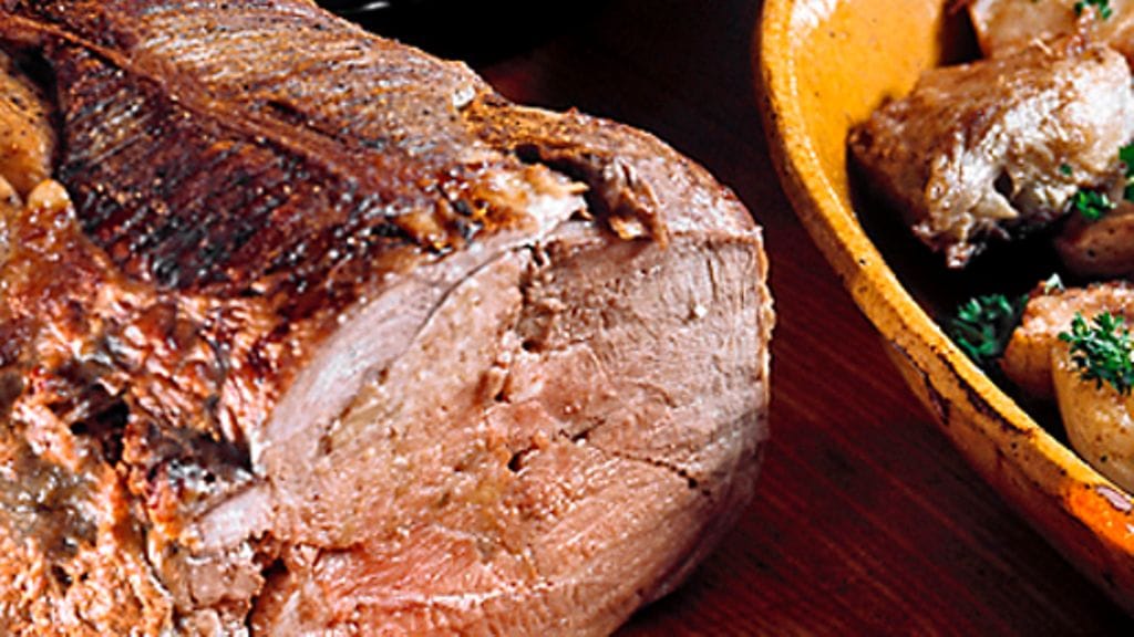 3. Paina lihaan paistomittari. Paista uunin alatasolla, kunnes mittari näyttää 70 astetta. Anna paistin vetäytyä 15 minuuttia ennen kuin poistat sidelangan.