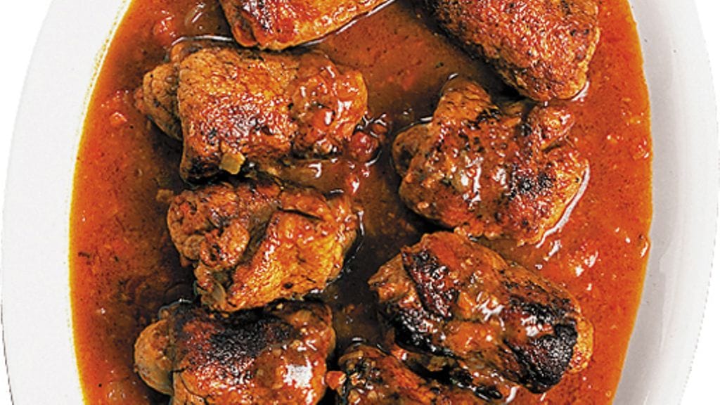 2. Pane loput täytteet uuninkestävään, kannelliseen vuokaan. Ripottele päälle jauhot, sekoita ja lisää lihaliemi. Mausta suolalla ja pippurilla. Lisää kääryleet kastikkeeseen.