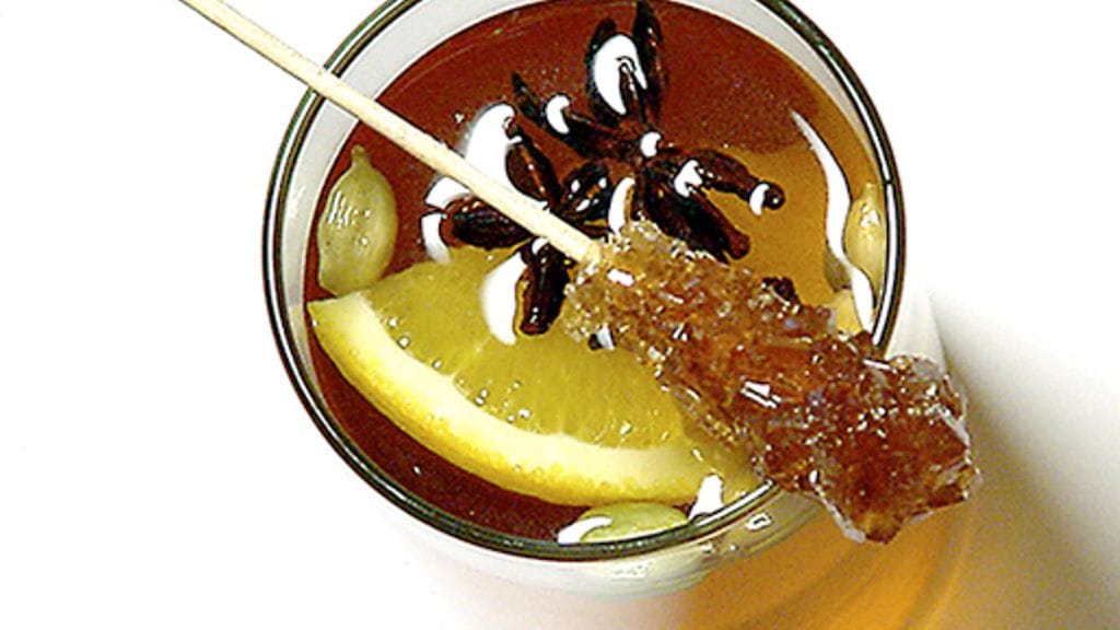 Tee kanelin, kardemumman ja tähtianiksen kanssa on mausteinen ja maukas vaihtoehto niille, jotka eivät halua juoda alkoholia glögijuhlissa. Tähtianis lisätään vasta tarjoillessa, koska siitä irtoaa nopeasti paljon vahvaa makua.