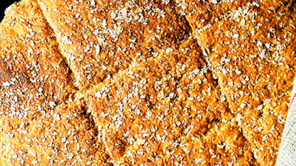 3. Paista uunin keskitasolla 15-20 minuuttia. Murra paloiksi ja jäähdytä ritilällä.