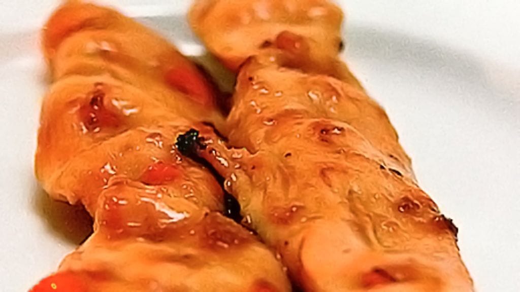 2. Grillaa vartaita grillipannussa tai hiiligrillissä 3 minuuttia puoleltaan. Voit panna ne myös 275-asteiseen uuniin grillivastuksen alle.