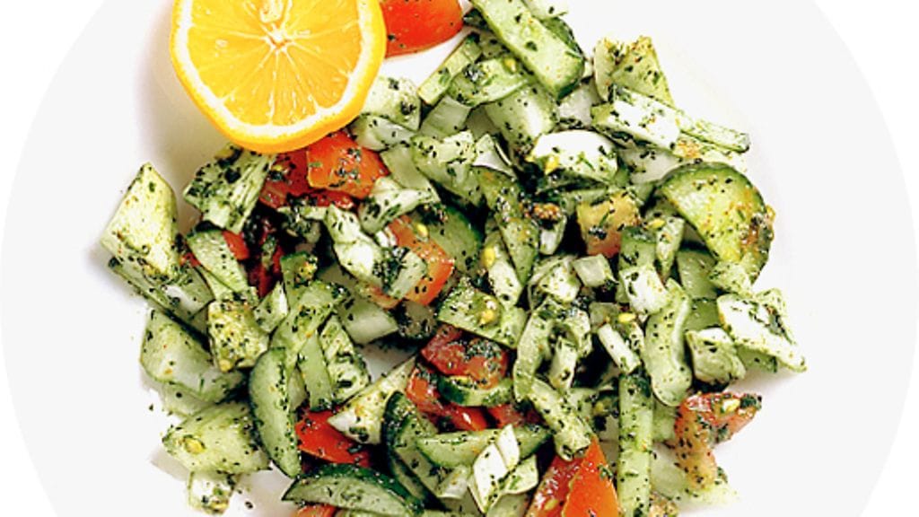 2. Sekoita kurkku, tomaatit, sipuli, chili ja korianteri. Sirottele päälle sokeria ja kaada joukkoon sitruunamehu. Sekoita hyvin. Nosta salaatti kylmään ennen tarjoilua.