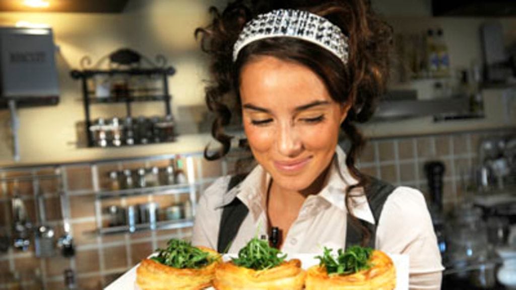 Paista piiraita 200-asteisessa uunissa 16-20 minuuttia. Lopuksi koristele piiraat rucolasalaatilla ja tilkalla oliiviöljyä.