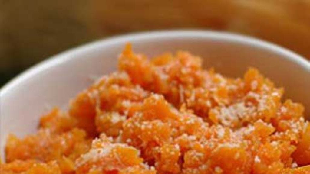 - Laita porkkanat ja muutama lusikallinen vettä kattilasta kulhoon.