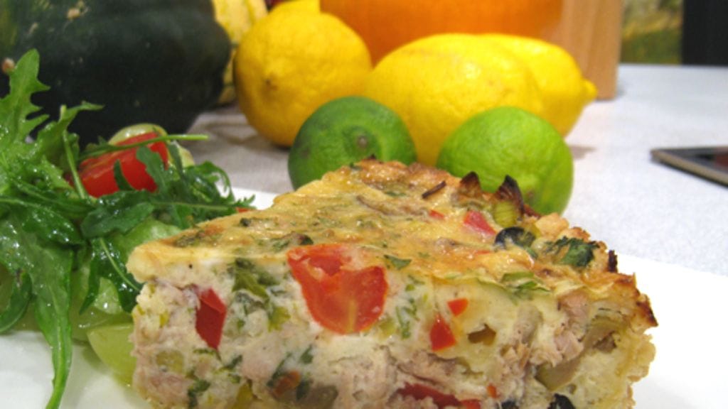 Valmista täyte. Kuullota öljyssä purjosipuli, valkosipuli, paprika ja oliivit. Sekoita joukkoon tonnikala ja mausteet.