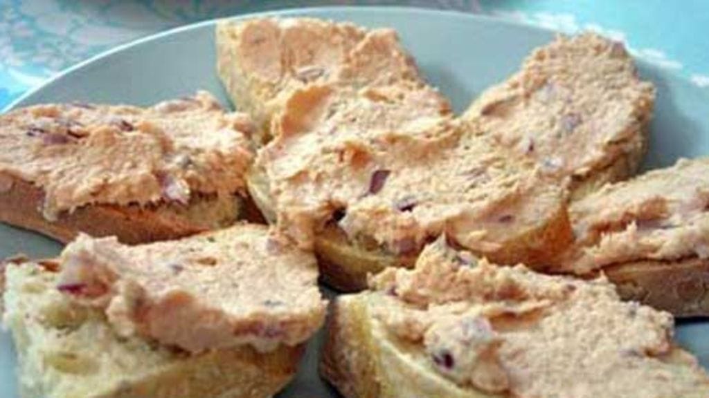 Sekoita sipulia lukuun ottamatta kaikki ainekset tehosekoittimessa. Lisää lopuksi sipuli ja tarkista maku. Levitä paahdetuille kolmioleiville tai tuoreelle ciabattalle tai muulle leivälle; oma suosikkini on Tampereen rievä tai muu tuore ohraleipä.
