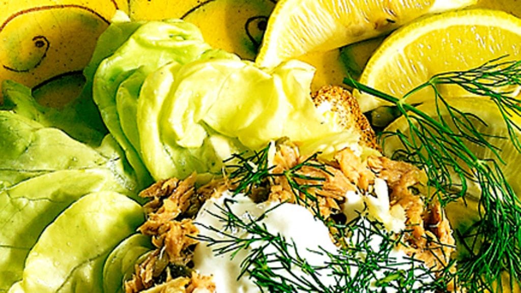 3. Sekoita kermaviili piparjuuriraasteen kanssa ja lusikoi nokareet voileiville. Koristele tillillä ja sitruunalla.