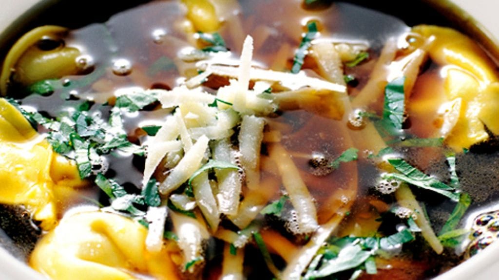 2. Lisää joukkoon tortellinit ja keitä pehmeäksi. Mausta suolalla ja pippurilla ja tarjoa parmesaanin ja persiljasilpun kera.