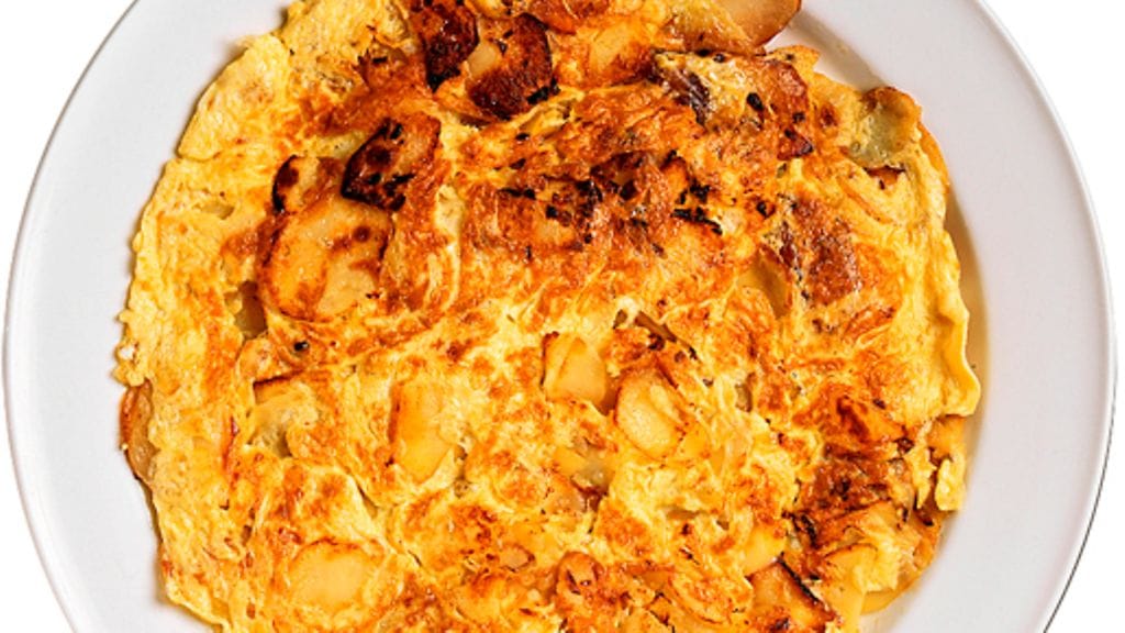 3. Riko munien rakenne ja mausta suolalla ja pippurilla. Kaada munat pannulle peruna-sipulisekoituksen päälle. Ravistele munakasta muutamia kertoja kypsentämisen aikana.