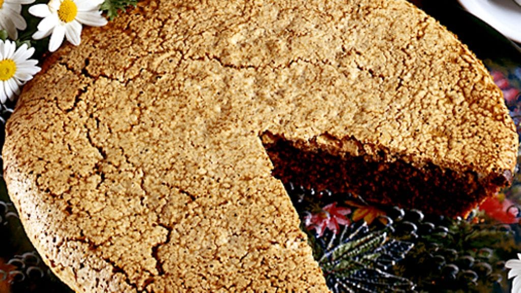 3. Levitä taikina vuokaan. Vatkaa valkuaiset kovaksi ja lisää sokeri vähän kerrallaan. Kääntele varovaisesti mukaan jauhetut pähkinät, levitä marenkitaikina kakulle.