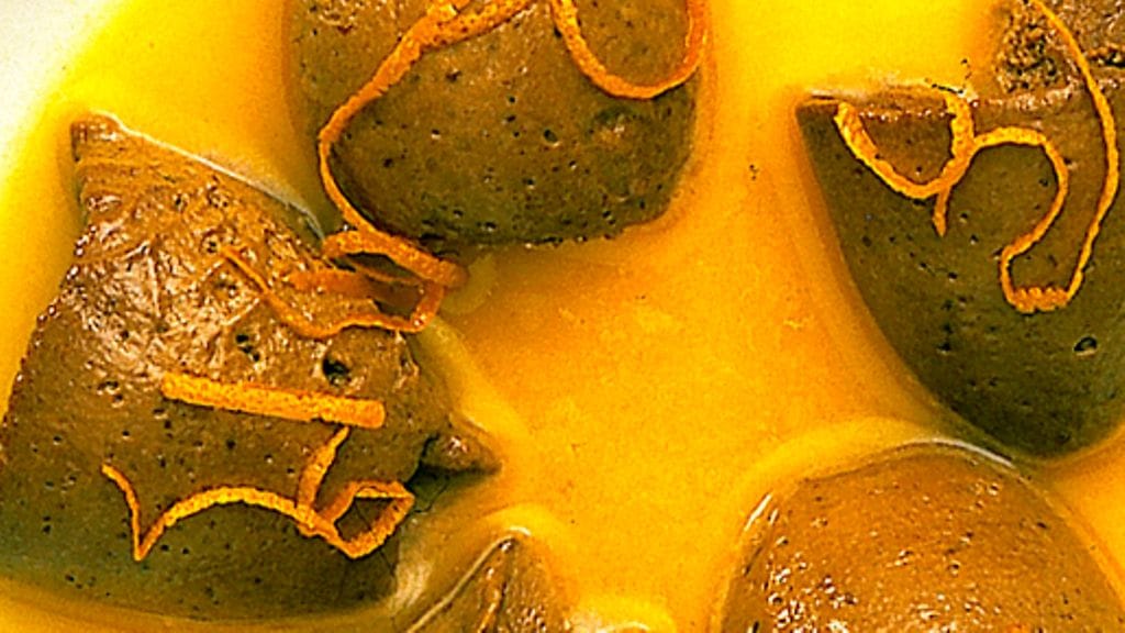 4. Appelsiinikastike: Kiehauta vesi, mehu ja sokeri. Kaada liemi appelsiinin kuorisuikaleiden päälle ja jätä vetäytymään 15 minuutiksi. Siivilöi kastike ja suurusta Maizenalla. Säästä kuorisuikaleet koristeluun. Vihje: pakasta jäljelle jääneet munanvalkuaiset ja valmista niistä marenkia.