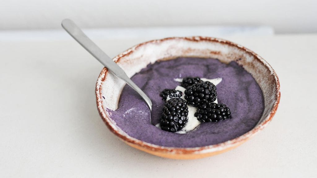 Tarkasta puuron koostumus ja lisää tarvittaessa vettä. Koristele cashewkermalla ja marjoilla tai hedelmillä.