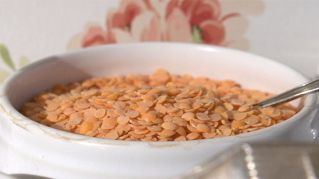 Pilko sipuli. Lisää kaikki ainekset kiehuvaan veteen sitruunamehua lukuun ottamatta. Anna kiehua hiljaisella tulella puolisen tuntia. Lisää lopuksi sitruunamehu ja tarkista suola. Sekoita niin halutessasi murskattu valkosipulin kynsi jogurttiin. Lisää kuhunkin annokseen lusikallinen jogurttia juuri ennen ateriointia.