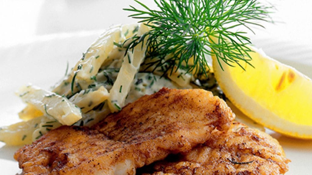 3. Mausta ruisjauhot suolalla ja pippurilla. Kääntele turska ensin vehnäjauhoissa, sitten vatkatussa munassa ja lopuksi ruisjauhoissa. Paista kullanruskeaksi voissa.