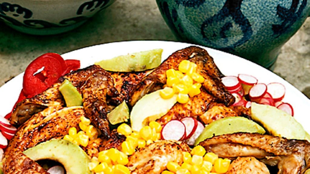 1. Keitä perunat ja viipaloi ne. Suikaloi liha. Valuta maissi, viipaloi avokadot ja suikaloi paprika sekä retiisit.