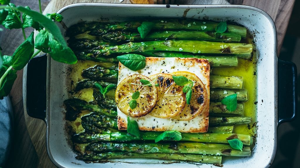 Laita fetapala parsojen päälle ja lorauta päälle oliiviöljyä. Koristele sitruunasiivuilla. Pirskottele päälle sitruunamehua ja hunajaa. Viimeistele mustapippurilla.