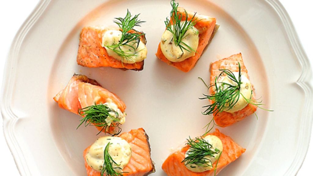 3. Sulata voi kattilassa. Purista valkosipuli voihin. Voitele lohi voilla. Mausta suolalla ja pippurilla. Paista uunissa noin 20 minuuttia. Anna jäähtyä. Annostele päälle tartarkastiketta ja koristele tillinoksalla.