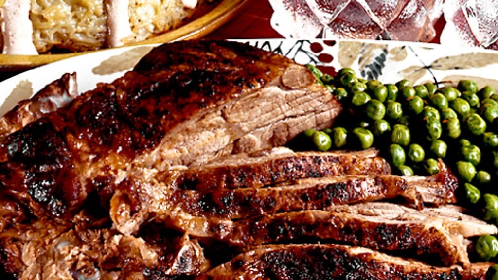 1. Kuumenna uuni 200 asteeseen. Mausta liha suolalla ja pippurilla, laita uunivuokaan. Kaada ¾ dl vettä vuoan pohjalle, laita liha uunin keskitasolle.