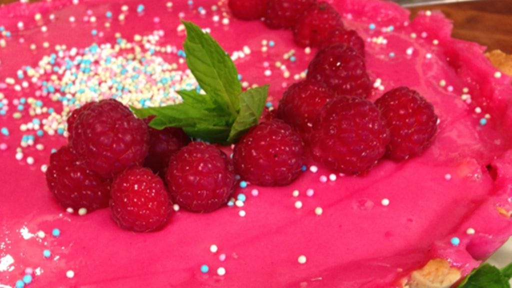 Survoa punaherukoita hieman ja levitä survos pikkupiiraiden tai ison piirakan pohjalle, jaa päälle vadelmat.