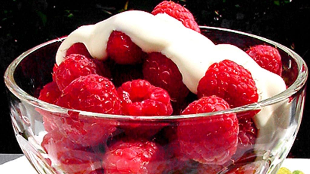 2. Jaa kauramuroseos jalallisiin annoslaseihin. Täytä lasit kukkuroilleen vadelmilla ja lusikoi lopuksi huipulle vaniljalla maustettua jogurttia.