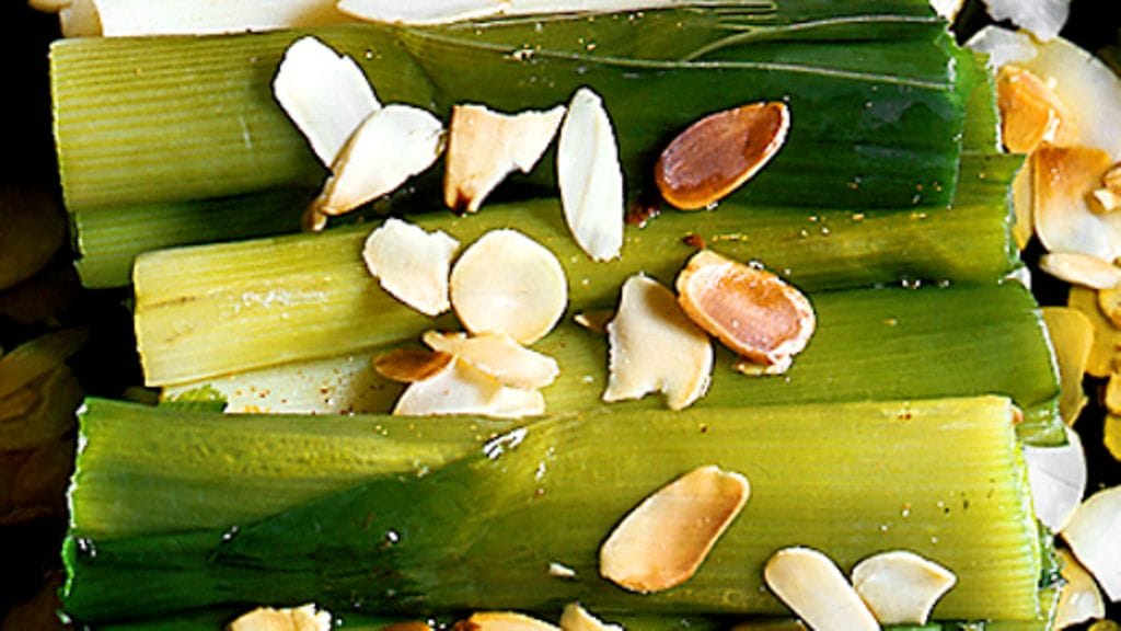 1. Paloittele purjot 6-7 cm paloiksi ja huuhdo ne hyvin. Keitä ne lähes pehmeiksi kevyesti suolatussa vedessä ja valuta.