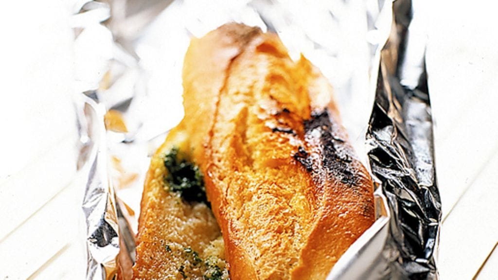 1. Anna voin pehmetä huoneenlämmössä. Silppua persilja ja sekoita voihin. Purista joukkoon valkosipulin kynnet, mausta suolalla ja pippurilla ja sekoita. Kuumenna uuni 275 asteeseen.