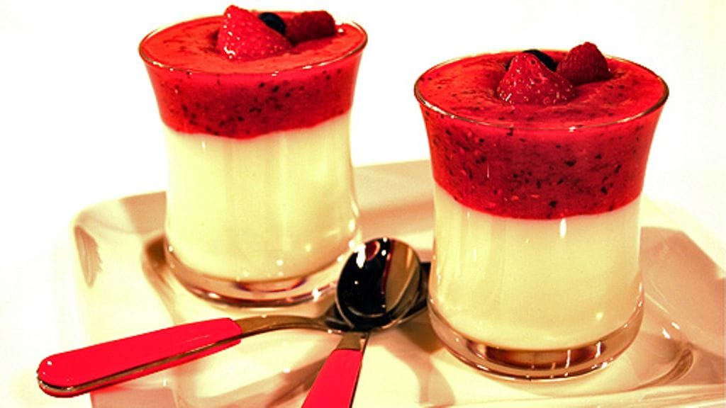 Jäähdytä kylmässä, jotta kiisseli hyytyy ja kaada pinnalle marjasose.