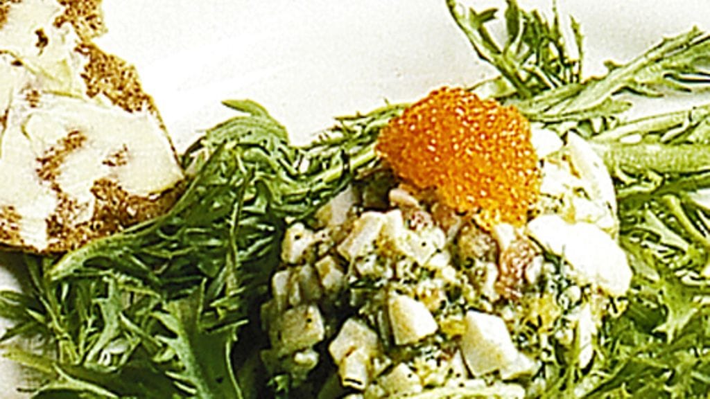 3. Tarjoile seos kylmänä näkkileivän tai tumman saaristolaisleivän kanssa koristeltuna tillinoksilla ja mätinokareilla sekä salaatinlehdillä. Napanderi ja/tai kylmä olut säestävät hienosti tätä herkkua, joka sopii myös uusien perunoiden kyytipojaksi juhannuspöytään tai noutopöydän vetonaulaksi.
