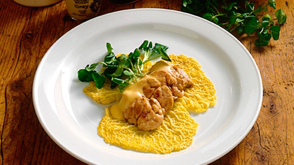 2. Sinappikastike: Kuori salottisipulit ja silppua ne hienoksi. Kuullota silppua oliiviöljyssä, ota kasari liedeltä ja sekoita joukkoon 1 rkl vehnäjauhoa. Nosta takaisin liedelle ja kaada vähitellen seokseen lihaliemi koko ajan hämmentäen. Mausta suolalla, pippurilla ja balsamicolla ja anna porista hetken aikaa. Siivilöi kastike, lisää sinappi ja Pernod ja kuumenna kastike kiehuvaksi ennen tarjoilua.
