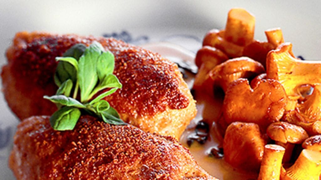 3. Keitä liemi, kerma, sinappi ja tomaattipyree. Keitä kokoon 10 minuuttia. Tarjoile pyyt kastikkeen ja voissa paistettujen kantarellien kera.