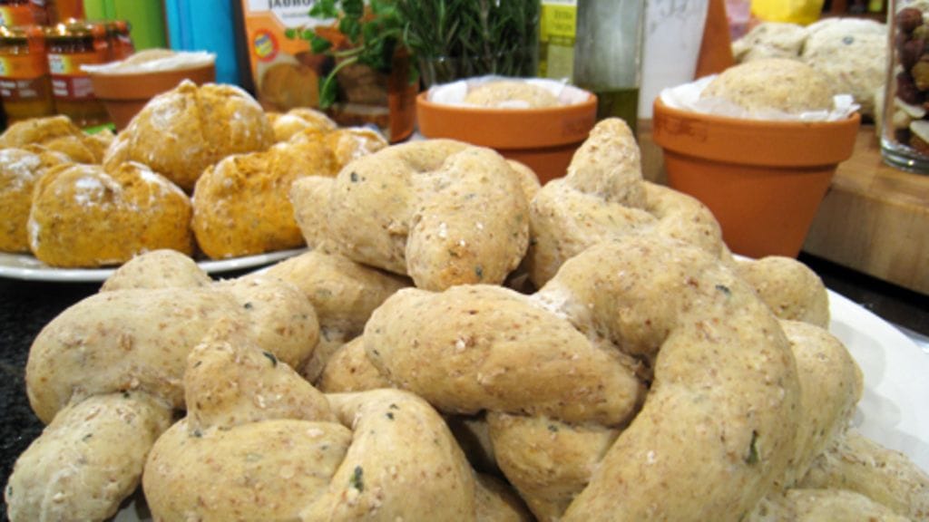 Anna taikinan kohota vedottomassa paikassa liinalla peitettynä 1-1,5 tuntia. Alusta kohonnut taikina jauhotetulla alustalla ja leivo siitä kaksi pitkää tankoa. Leikkaa tangot n. 20 yhtä suureksi palaksi ja leivo paloista haluamasi muotoisia sämpylöitä. Kohota leivonnaisia pellillä liinalla peitettyinä vielä puoli tuntia ja paista 225-asteisessa uunissa kunnes sämpylät ovat kauniin värisiä.